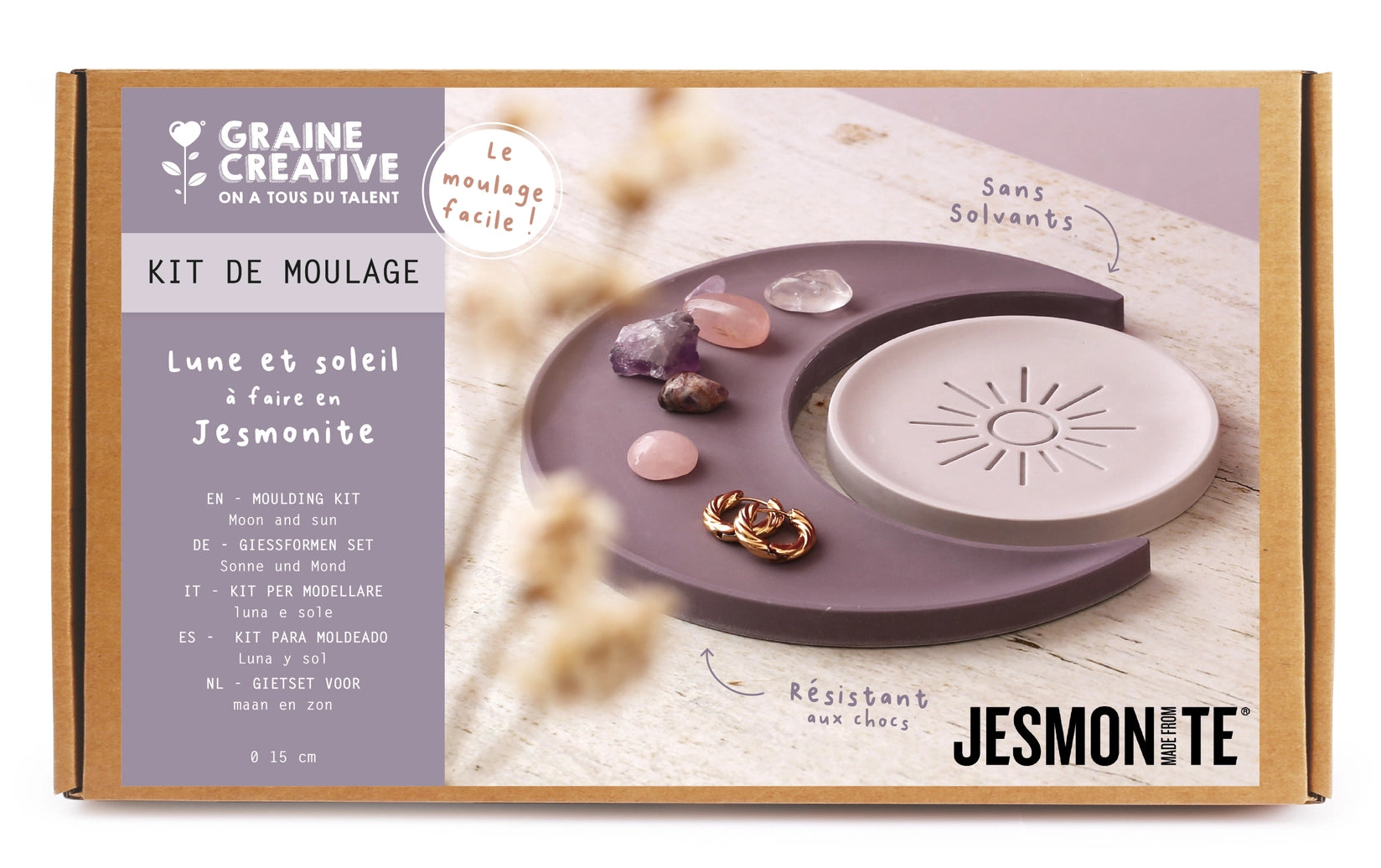 Kit DIY moulage Jesmonite Lune & Soleil – Graine Créative : un coffret complet pour réaliser une lune et un soleil décoratifs en Jesmonite, l’alternative écologique à la résine.