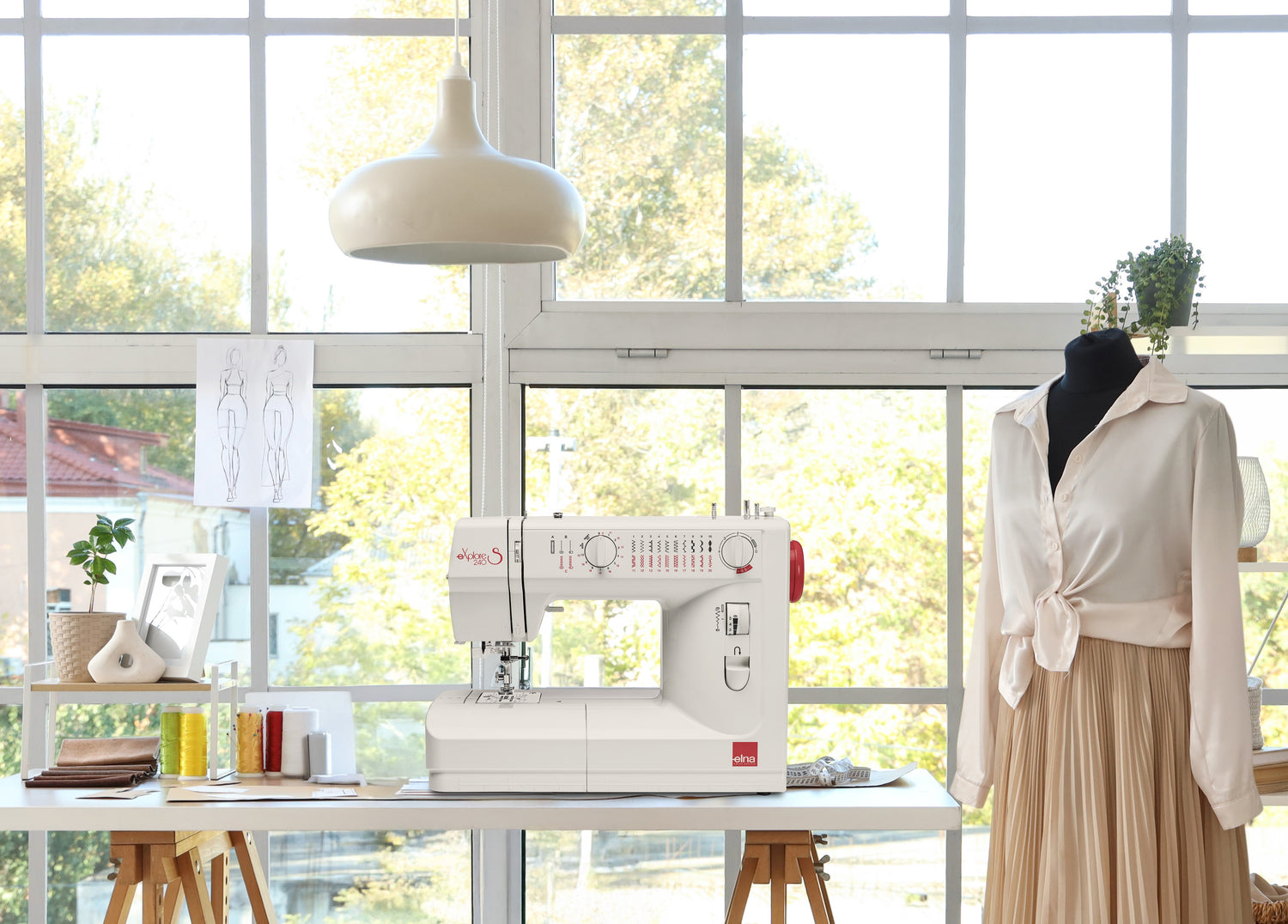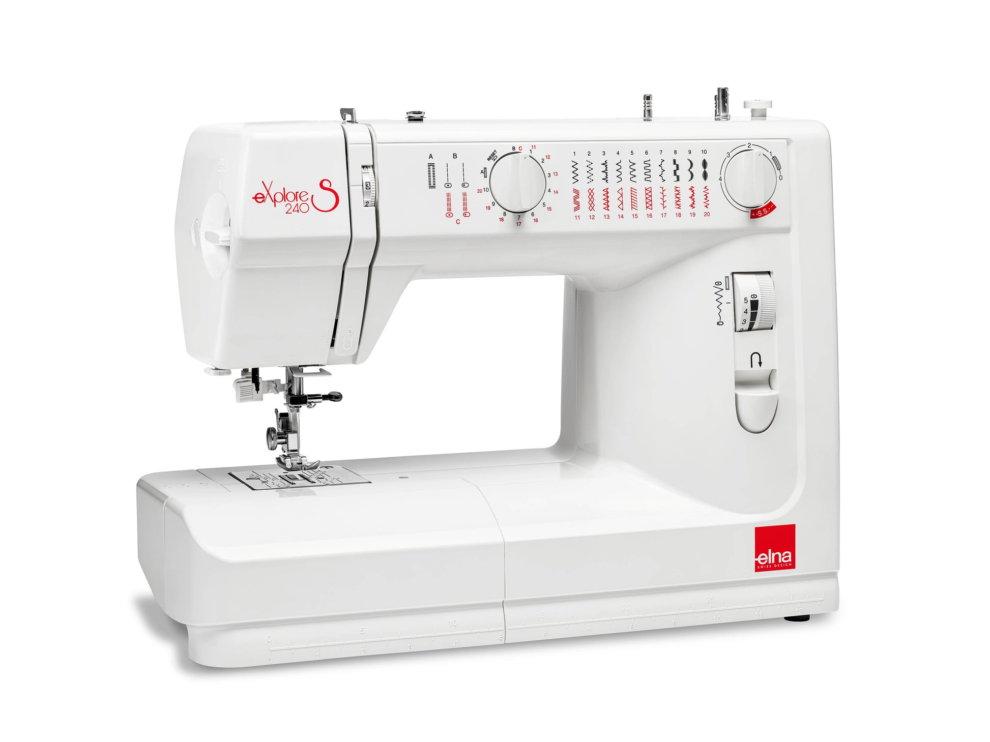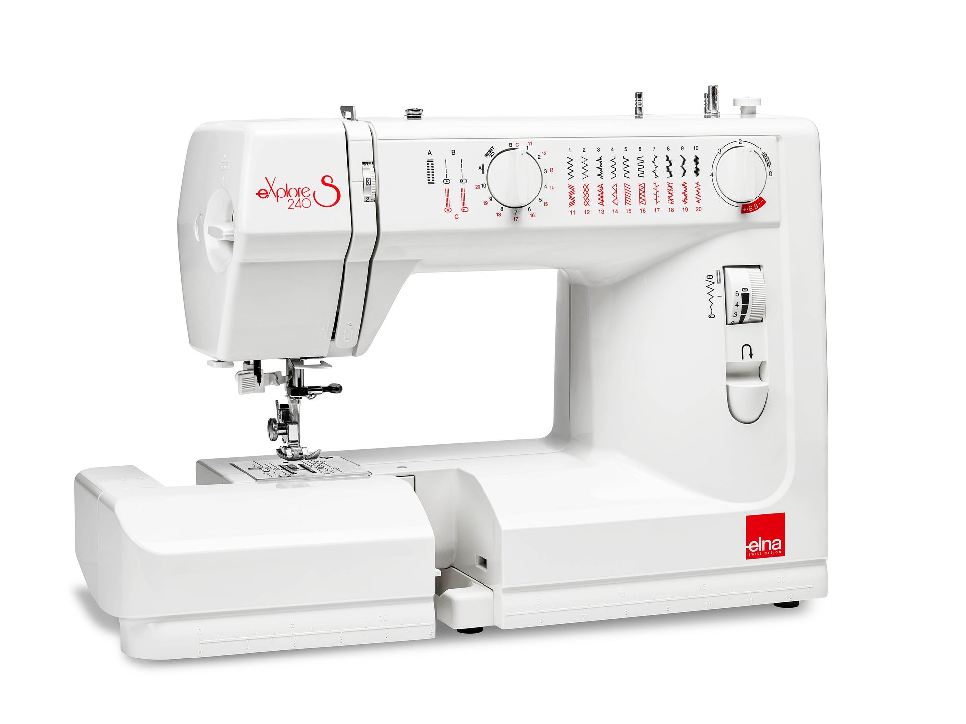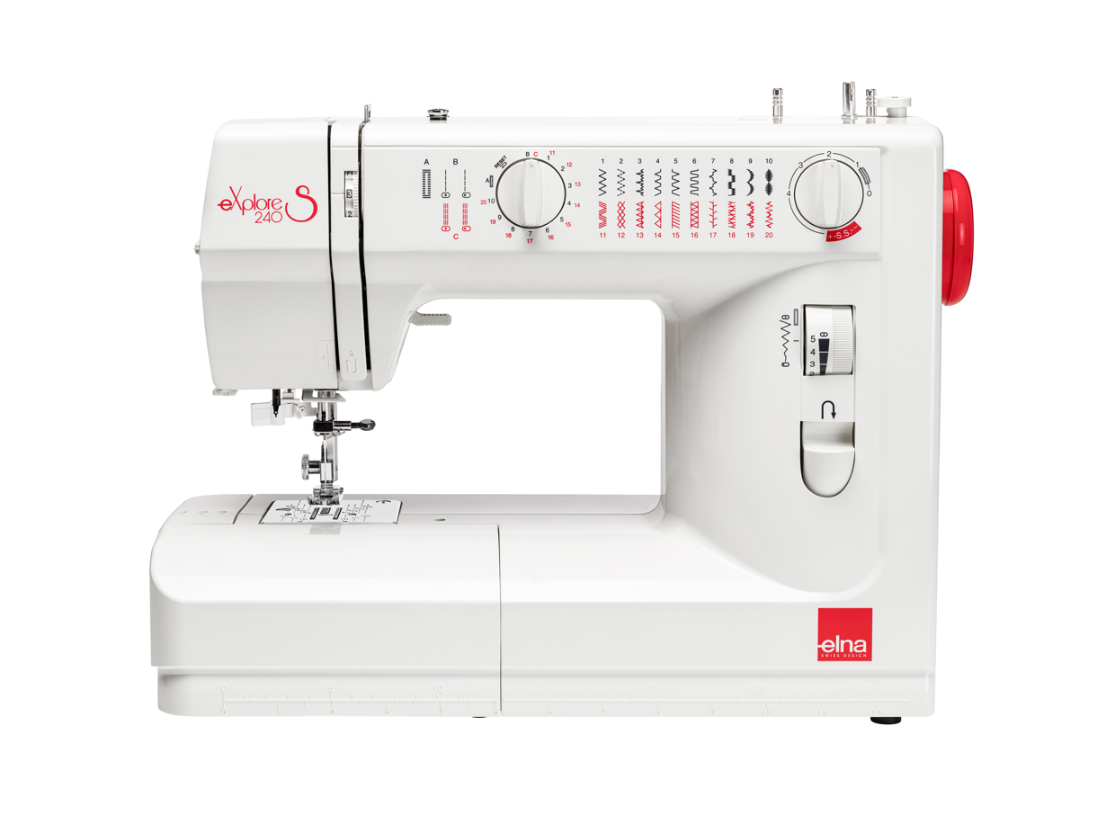La elna eXplore 240S est une machine à coudre mécanique abordable qui ne sacrifie ni le confort d’utilisation ni la qualité. Les principales commandes sont regroupées au même endroit pour permettre de sélectionner rapidement le point souhaité et d’ajuster sa longueur comme sa largeur, sans se perdre dans les réglages.