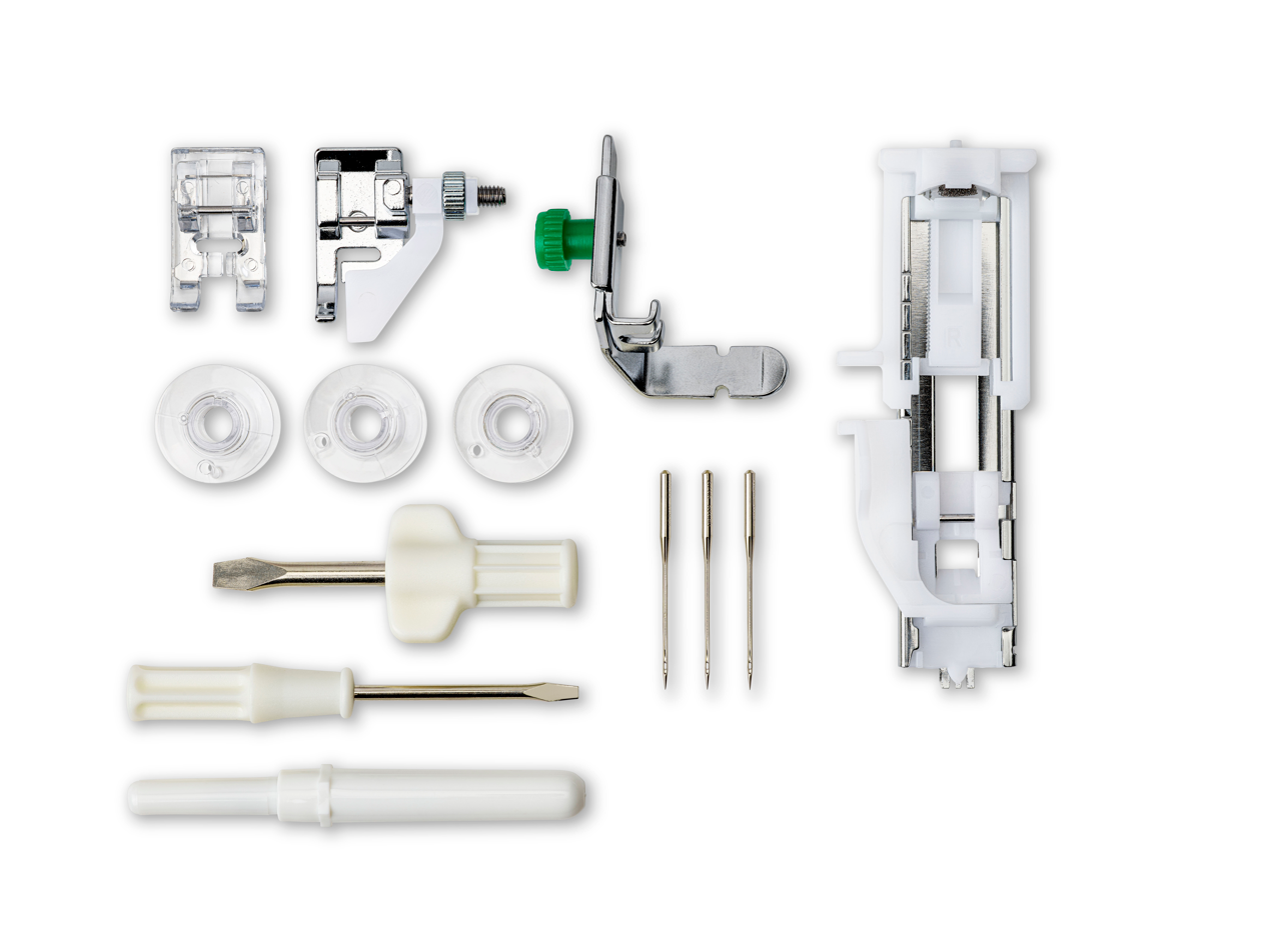 - Enfile-aiguille intégré et bobineur à débrayage automatique pour préparer la machine en quelques instants ;