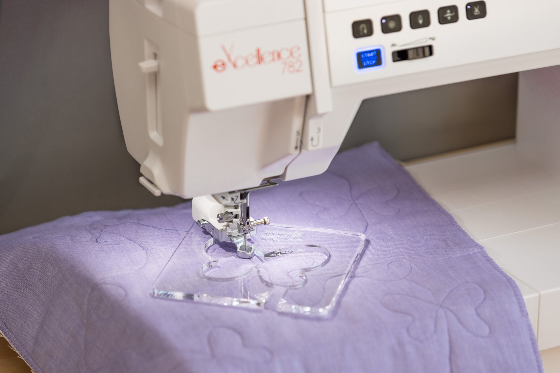 La 782 eXcellence est clairement taillée pour le patchwork et le quilting : bras long avec grande ouverture, table d’extension extra-large, éclairage LED très généreux et système Dual Feed Plus qui entraîne les couches de tissu en parfaite synchronisation.