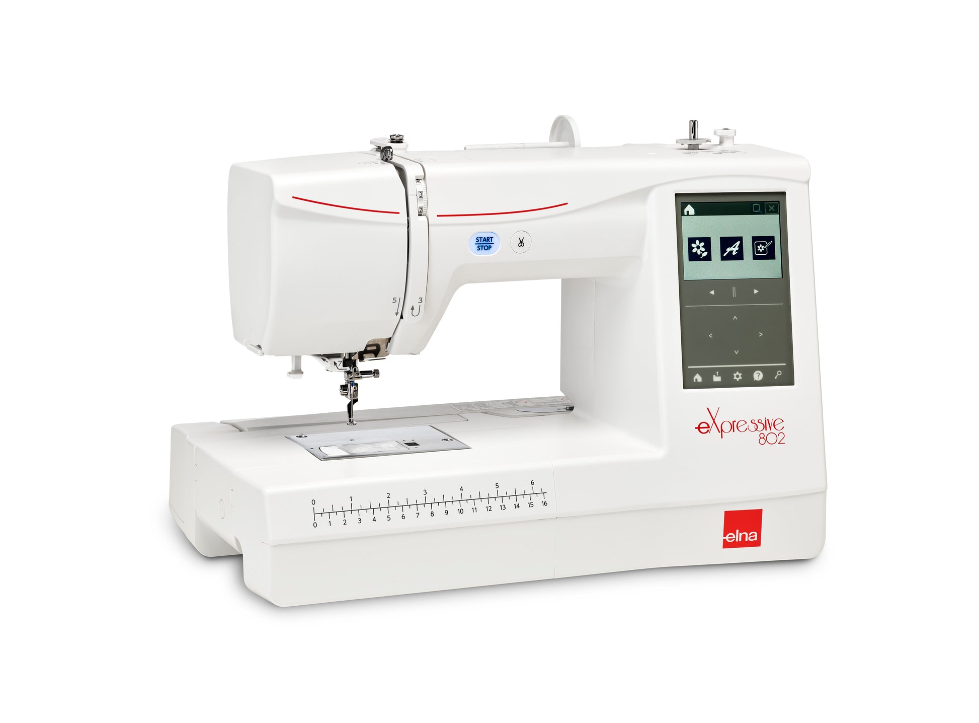La 802 mise clairement sur le confort d’utilisation : écran tactile couleur pour sélectionner et éditer les motifs, enfile-aiguille Smart System, capteurs de fil d’aiguille et de canette pour éviter les mauvaises surprises en cours de broderie, port USB et mémoire interne pour importer et sauvegarder vos dessins favoris.